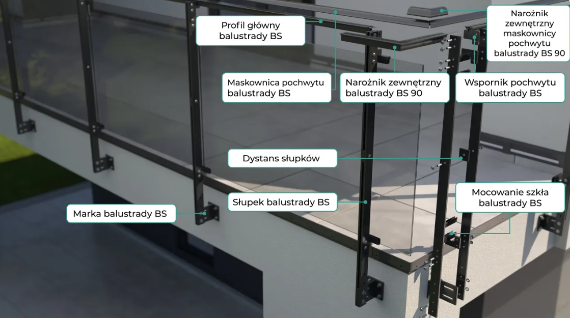 Przeznaczenie: stanowi jeden z głównych elementów nośnych systemu balustrad słupkowych.